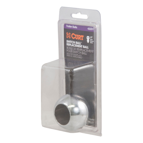 CURT Switch Ball trailer balls are a breakthrough in trailer ball technology. As a result of CURT innovation and engineering genius, Switch Balls offer the ultimate in convenience and reliability for a variety of light-duty and medium-duty towing applications. Essentially, a CURT Switch Ball is a trailer ball shank with a removable head. With its exclusive J-groove design, the Switch Ball trailer ball allows different heads or ball sizes to be places on the shank for accommodating different coupler sizes. This means there is no need to switch between ball mounts or even to own a second ball mount to fit an additional trailer. When you need to make the switch, simply twist the Switch Ball head, lift it off and twist on another. The J-groove ensures a solid hold on your trailer, while still allowing for easy removal of the trailer ball without tools or pins. This CURT Switch Ball trailer ball head features a 2 ball diameter and a 1-1/8 neck hole diameter. It is constructed from premium-grade steel for optimum strength and has a bright nickel-chrome finish for lasting rust resistance. It is rated to tow up to 8,000 lbs. gross trailer weight and is tested in accordance with SAE J684 for safety.