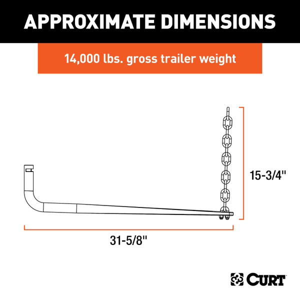 The CURT weight distribution hitch is a specialized towing system that provides improved vehicle and trailer control by leveling the trailer and more evenly distributing its tongue weight across the trailer's and vehicle's axles. Weight distribution hitches are commonly used on travel trailers and campers but can also be applied to other large loads. This replacement spring bar is designed to fit CURT round bar weight distribution hitches #17007 or #17222. It features forged steel construction and a durable powder coat finish for long-lasting use. It offers a gross trailer weight capacity of 10,000 - 14,000 lbs., a tongue weight capacity of 1,000 - 1,400 lbs. and comes with a pre-attached spring bar chain for convenient installation and tension adjustment.