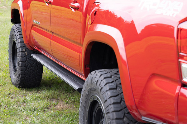 Rough Countrys RETRACT Electric Running Board Steps offer you a sleek, modern way to climb into your cab. These durable electric side steps feature a motorized swing-out function that instantly extends the step when you open the door. The convenient drop profile allows for easy entry and works great on trucks from stock height to any size lift. Once the door closes, the step automatically tucks away for a clean look. Rough Countrys retractable truck steps feature an easy Plug and Play assembly, connecting directly to your battery terminal and OBDII port for easy installation without the need for complicated wiring. With a durable aluminum construction and corrosion-resistant finish, these automated truck steps are designed for a long operational lifespan no matter where the road takes you. Includes a 3-year limited warranty!