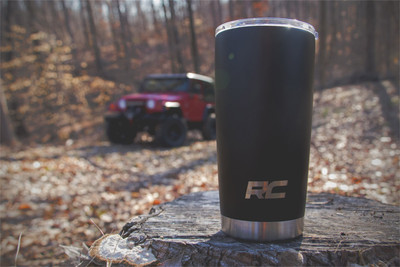 Keep cold beverages colder and hot beverages warmer long after the sun sets on your trail with Rough Countrys 20oz Tumblers! These double-wall, vacuum sealed tumblers use the latest insulation technology to keep your refreshments at the perfect temperature for hours upon hours. Made of a durable, stainless steel construction, Rough Countrys 20oz tumbler is corrosion resistant and designed to never sweat or condensate. The sleek black coating with laser-cut Rough Country logos and tire tread pattern give your tumbler an awesome look while allowing you to rep your Rough Country pride! Each tumbler features a BPA-free lid that is dishwasher safe.