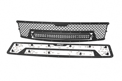 Give the front-end of your 07-13 Chevy 1500 a unique look with Rough Country's Mesh Grille kit! This grille replacement kit swaps out your stock grille with the eye-catching, head-turning good looks of this aftermarket upgrade. With a unique, laser-cut mesh pattern surrounded by stylish, stainless steel button head bolts, this grill gives your truck a more menacing look that's sure to draw attention. Each kit is powdercoated black to resist corrosion and give a long lifespan of good looks.This kit features a Rough Country's 30 Curved Dual-Row Black-Series LED light bar with Cree LED's outputting a staggering 14,400 Lumens and 180 Watts of lighting power. Includes a mountable on/off switch, wiring harness, and our 3 Year Warranty!