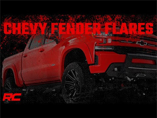 Rough Country's SF1 Fender Flares help you get the tough-looking finishing touch that your build deserves with a one-of-a-kind design. These flares complement the truck's body lines offering a clean look that will turn heads. The SF1 flare design gives the perfect amount of additional tire coverage for an oversized wheel and tire package and feature an integrated rear "mud catcher" to help reduce tire sling down the truck side. They are easy to install on your Chevy Silverado 1500, with excellent fitment right out of the box and includes all necessary hardware. The construction of these flares is from a durable ABS material that is both UV resistant for an uncoated install or paint-ready for a custom color match look. Not only will you get the utility you need from these flares, but you'll also have a unique and aggressive look for your truck.? Whether you're looking for functionality or an accessory to tie your lift, wheels and tires together, Rough Country's SF1 fender flares deliver on all fronts.