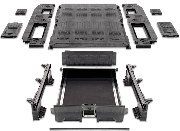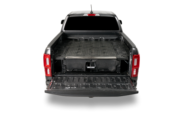 The DECKED in-vehicle storage system offers secure, weatherproof and organized storage with a sliding drawer toolbox system for pick up trucks. 100% American made, the DECKED system features two secure, full bed-length drawers capable of carrying 200lb each that glide effortlessly on industrial-grade wheels beneath a 2,000lb payload-rated deck. Constructed from rugged High Density Polyethylene (HDPE) and steel, owners get ergonomic access to tools and equipment while maintaining full use of the truck bed. DECKED systems are perfect for contractors, painters, carpenters, electricians, surveyors, plumbers, handyman services and the outdoor enthusiast who need their truck to have secure storage bins that are easy to access. The drawers slide out at waist height while still allowing the owner full use of their truck bed. The system, once assembled, is easily installed and removed. Accessories are available for customizable storage.