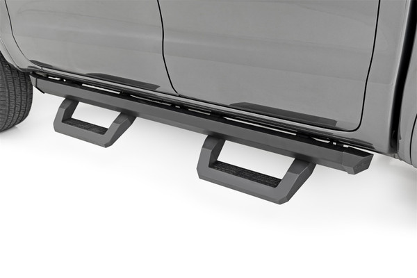 Create A New AccountInnovative adjustable design. Its time to put your lifted vehicle a step ahead of the others! Rough Countrys new SR2 Side Steps are the perfect upgrade for your Ford Ranger. Constructed with an innovative slotted rail system, our hoop steps are easily adjustable. Simply slide the footpad left or right along the rail until it is at the perfect position to hop in and out. Durable and Affordable. Our aluminum adjustable steps are long-lasting, corrosion-resistant, and a high-quality option at an affordable price. Powder-coated for added protection from the elements, the SR2 aluminum steps and bar also improve the look of your truck by hiding the body pinch-weld and frame. Installation: Adjustable side steps can be easily installed with an estimated 1-2 hours install time. Warranty: Rough Countrys SR2 Aluminum Steps have a limited lifetime replacement warranty towards manufacturer defects. As such, the product is protected from structural and workmanship damage after the date of purchase. With our industry-leading warranty, give yourself peace of mind when using Rough Countrys products for your truck.