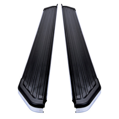 Custom Running Boards with Brackets; Extruded Aluminum Base with Black Powdercoated Accent; Rubber step area runs full length of the board; Gap strip molded directly into the running board