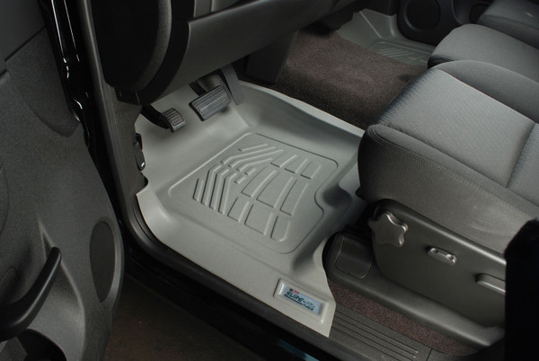 Wade Sure-Fit Front Row Floor Mats are custom full-coverage designs. They are made of rubberized copolymer and have a rigid core and tactile surface. They come equipped to accommodate OE retention hooks were applicable. The front row driver and passenger areas are digitally measured for the most accurate fit and is designed to protect the OE carpet. Available in black gray or tan. Made in the USA.