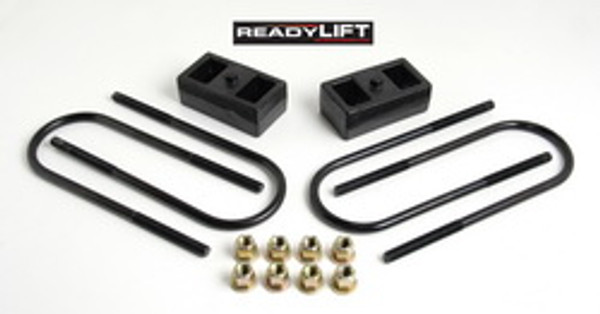 ReadyLift OEM style rear block kits are now available for model specific applications. The Rear Block Kits will safely lift the rear of your truck and additional 1 in. -3 in. Based on OEM designs and never made out of light weight extrusions, our 1 in. Toyota and GM blocks are made of cast iron and our 3 in. GM blocks have Anti-Rotation ears built in. The Ford Super Duty 4 in. blocks have Integrated OEM style bump stops. These kits will put the rake back into your truck for hauling or towing and are designed to work in concert with your ReadyLift Suspension Leveling Kit. Comes with a Limited Lifetime warranty.