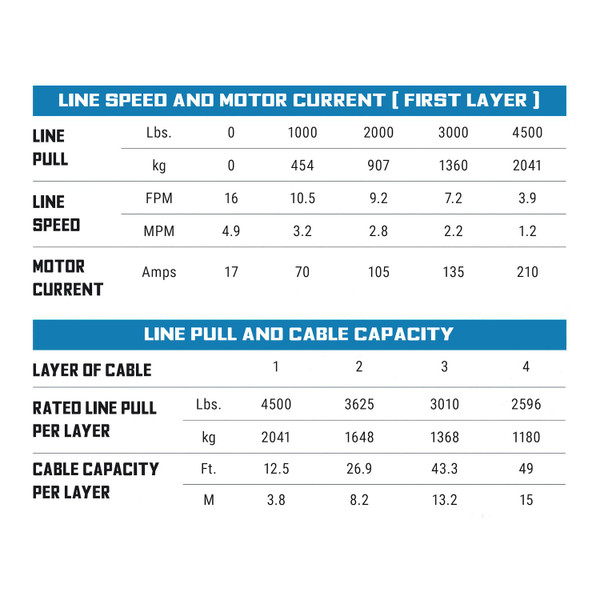 4,500 lb line pull rating and automatic 100% load-holding brake