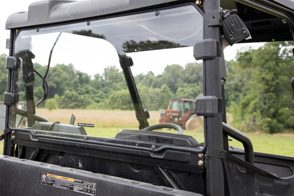 Added Protection and comfortability. Protect the occupants of your Polaris Ranger from off-road hazards such as rocks, branches, and other debris with Rough Country's Scratch-Resistant Windshields. UTV Windshields offer a clear visual of the trail ahead and allow for a much more comfortable outing! High-Quality Polycarbonate Construction. Rough Country UTV windshields are constructed from thick polycarbonate material that is precision cut for a perfect fit. The polycarbonate material provides an ideal combination of clarity, flexibility, durability that outperforms glass, acrylic, and other windshield materials. Durable Scratch and UV Resistance. Each windshield is not only constructed from thick polycarbonate material but enhanced by a secondary AR2 hard-coating process. This process completely coats the windshield with a hardened, scratch-resistant barrier. This treatment also provides the additional benefit of UV protection. Easy Installation. With a simple strap-on installation process, installing a Rough Country windshield couldn't be easier. Within 15 30 mins you can be ready to hit the trails. Limited-Lifetime Replacement Warranty. Rough Country's Scratch-Resistant Windshields are backed with a limited lifetime replacement warranty towards manufacturer defects. As such, the product is protected from structural and workmanship damage after the date of purchase. With our industry-leading warranty give yourself peace of mind when using Rough Country's Suspension products!