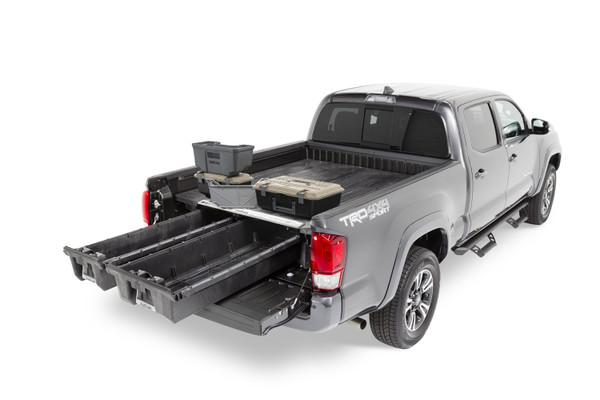 The DECKED in-vehicle storage system offers secure, weatherproof and organized storage with a sliding drawer toolbox system for pick up trucks. 100% American made, the DECKED system features two secure, full bed-length drawers capable of carrying 200lb each that glide effortlessly on industrial-grade wheels beneath a 2,000lb payload-rated deck. Constructed from rugged High Density Polyethylene (HDPE) and steel, owners get ergonomic access to tools and equipment while maintaining full use of the truck bed. DECKED systems are perfect for contractors, painters, carpenters, electricians, surveyors, plumbers, handyman services and the outdoor enthusiast who need their truck to have secure storage bins that are easy to access. The drawers slide out at waist height while still allowing the owner full use of their truck bed. The system, once assembled, is easily installed and removed. Accessories are available for customizable storage.