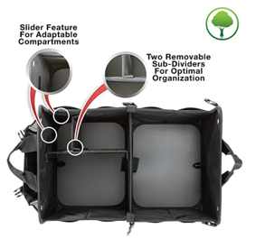 - Removable sub-divider to allow for a 2 or 3 or 4 compartments trunk organizer