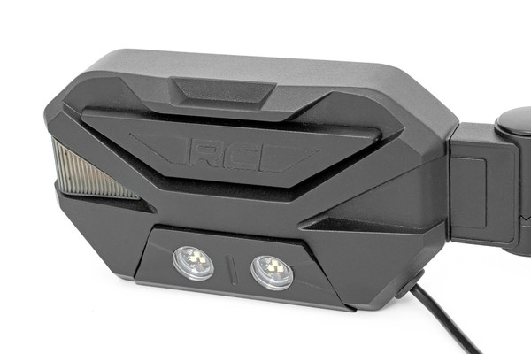 Enhanced Visibility. Equip your UTV with Rough Country's Universal Side Mirrors with LED and amber blinkers. This kit is an easy addition to your UTV's existing blinker kit to provide impressive off-road illumination. Superior Functionality. Each mirror features two bright white LEDs as well as an amber turn signal to tackle the trails ahead. Rough Country's Universal Side Mirrors feature a 360° swivel rotation and 120° forward and backward positioning. Boasting a durable cast 6063 aluminum housing and a shatter-resistant safety glass this must-have upgrade is designed to conquer the trails. Installation. With no cutting or drilling required to install, installation couldn't be easier. With an estimated timeframe of 30 minutes this full kit can be installed at home using standard tools and can be completed efficiently and quickly! Limited Lifetime Replacement Warranty. Rough Country's Universal Side Mirrors is backed with a limited lifetime replacement warranty towards manufacturer defects. As such, the product is protected from structural and workmanship damage after the date of purchase. With our industry-leading warranty give yourself peace of mind when using Rough Country's Suspension products!