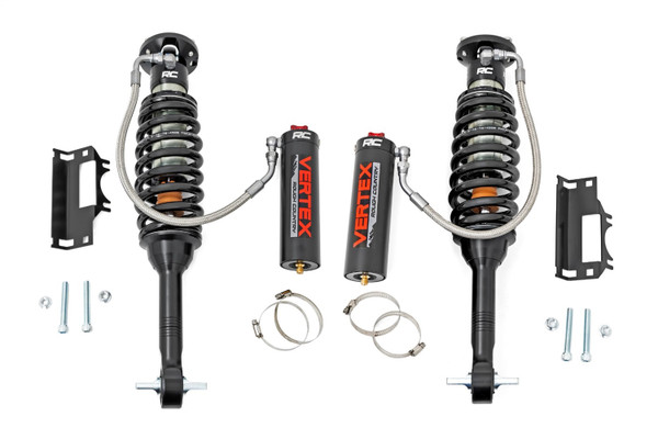 Behold The pinnacle of off-road performance and smooth ride quality in an affordable package has arrived with Rough Countrys 2.5 Vertex 8-Stage Adjustable Reservoir Shocks. These high-performance reservoir shocks offer an elite ride-quality in every situation you face; with an 8-stage adjustable damping system that lets you perfectly dial-in your ride for whatever lies ahead. Whether you want a smooth ride for city streets or the ultimate damping for off-road mayhem; a quick spin of the dial lets you adjust each shock to the exact performance specifications you desire. Rough Countrys Nitrogen-charged Vertex Shocks feature a monotube design with an external reservoir for increased oil capacity and damping sensitivity. Each shock features a massive 2.5 in. diameter piston and a high-flow 22 mm chrome hardened piston rod that simply dwarfs the competition. When it comes to investing in a high-end shock, you'll be pleased to find that Rough Countrys 2.5 in. piston design is beefier and offers an impressive 56 % greater fluid capacity than the average reservoir shock. A 3-stage; fortified seal system ensures your Vertex shocks keep kicking while the beautifully designed honed steel body offers a long lifespan of reliable performance and killer good looks. This shock is designed to be a true eye-catcher; with a beautiful silver finish; laser-etched RC logo; matching Vertex decals and CNC-machined Billet Aluminum accents. Rear shocks feature a durable bracket system with laser-etched logo and a premium braided steel reservoir line.Includes an Industry-leading 3-year Warranty!