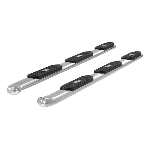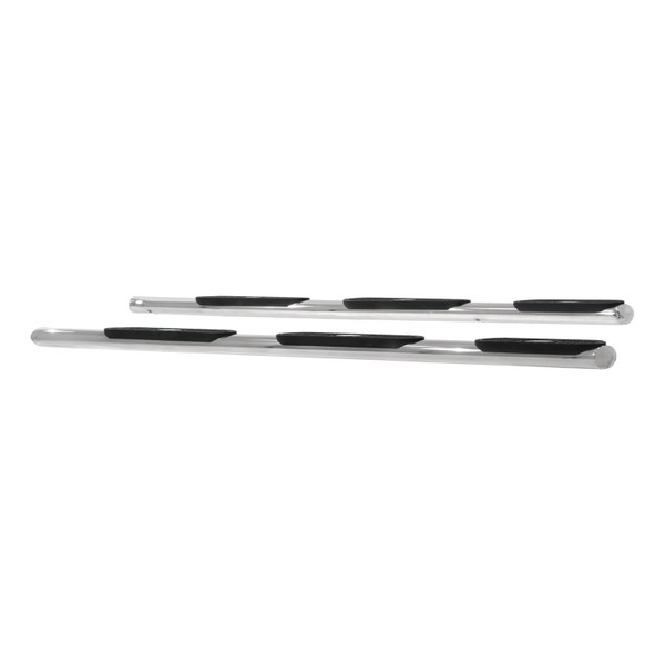 Spanning from front tire to back, each ARIES 4 wheel-to-wheel oval side bar provides an extra rear step pad and convenient access to the truck bed or cross bed toolbox. Available for regular cab pickup trucks and others, 4 wheel-to-wheel side bars feature an elliptical tube design with seamlessly blended ends for a superior, finished look. They are available in a mirror-like, polished stainless steel finish or semi-gloss black carbon steel, and they mount with vehicle-specific brackets for a custom fit.