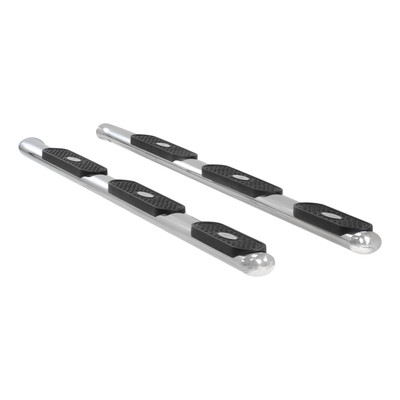 Spanning from front tire to back, each ARIES 4 wheel-to-wheel oval side bar provides an extra rear step pad and convenient access to the truck bed or cross bed toolbox. Available for regular cab pickup trucks and others, 4 wheel-to-wheel side bars feature an elliptical tube design with seamlessly blended ends for a superior, finished look. They are available in a mirror-like, polished stainless steel finish or semi-gloss black carbon steel, and they mount with vehicle-specific brackets for a custom fit.