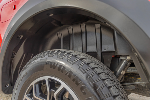 Create A New AccountGive your rear wheel wells superior protection and a striking, new look with Rough Countrys Rear Wheel Well Liners. Made of high-density Polyethylene plastic, these durable liners help conceal the unsightly gap between the body and frame which is more noticeable after lifting. The stylish, contoured design is perfectly tailored for a precise fit to your truck, while the all-black finish helps bring an aggressive look to the rear of your vehicle.Rough Country Rear Wheel Well Liners offer an extra barrier of protection to help shield your wheel wells from rocks, mud, salt, and harsh weather. With all the small, hard to clean areas covered, cleanup is fast and simple.Installation is easy too! Rough Country Rear Wheel Well Liners feature a bolt-on installation process thats easy enough to do with common tools in a home garage.