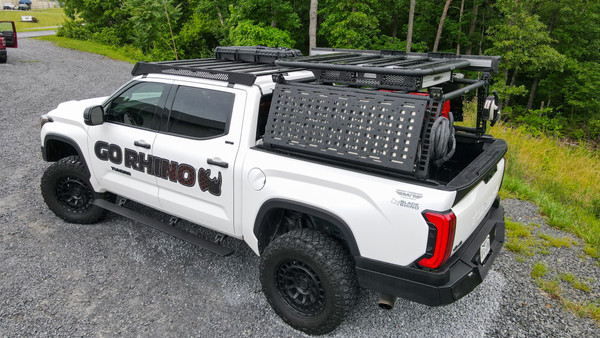 Go Rhino’s XRS Xtreme Rack features 4-CORE technology for unlimited ways to haul overland cargo and mount trail gear. 4-CORE is an extruded track system of slotted bars that can accept any 1/4 inch-20 hex bolt which means almost any accessory can be bolted to the rack. The combinaton of steel and aluminum offers both strength and weight savings and can easily support OE roofop tents. Installaton is drill-free and works with both factory bed rack mountng systems as well as the included bed rail mounting clamps. One Accessory Gear Plate is included. A large family of XRS and 4-CORE compatible accessories are also available to cover all your overlanding and camping needs, such as Quick Release Rooftop Tent Brackets, fold-down Accessory Gear Table, and much more. The XRS Cross Bars come with a Limited Lifetime warranty on materials and construction and a 5 year warranty on the the textured black finish